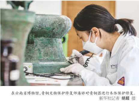 文物修好后,如何长期妥善保存是更大的课题。云南省博物馆文物保护中心副主任潘娇介绍说,为了对文物进行预防性保护,2017年起,博物馆在珍贵文物的展柜里置放了一个白色小盒子——无线传感环境监测终端,用来监测环境的温湿度、有机挥发物和紫外线等指标。此外,博物馆还为易损文物安装了隔震台。