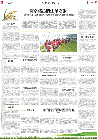 这时,老师拿起话筒说:“小朋友们,现在我们要出发了,大家要系好安全带!到下西关村水稻试验基地大概需要40分钟。”哦,原来我们今天参加的是插秧活动。
