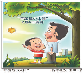 今年,地球运行到远日点的时刻是7月4日15时11分。此时,太阳视直径为31分28秒,堪称“年度最小太阳”,大约比今年1月4日地球通过近日点时可见的日面视直径小了3.4%。
