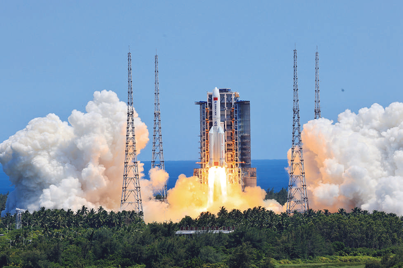 7月24日14时22分,搭载问天实验舱的长征五号B遥三运载火箭,在我国文昌航天发射场准时点火发射,约495秒后,问天实验舱与火箭成功分离并进入预定轨道,发射取得圆满成功。 新华社记者 李刚摄