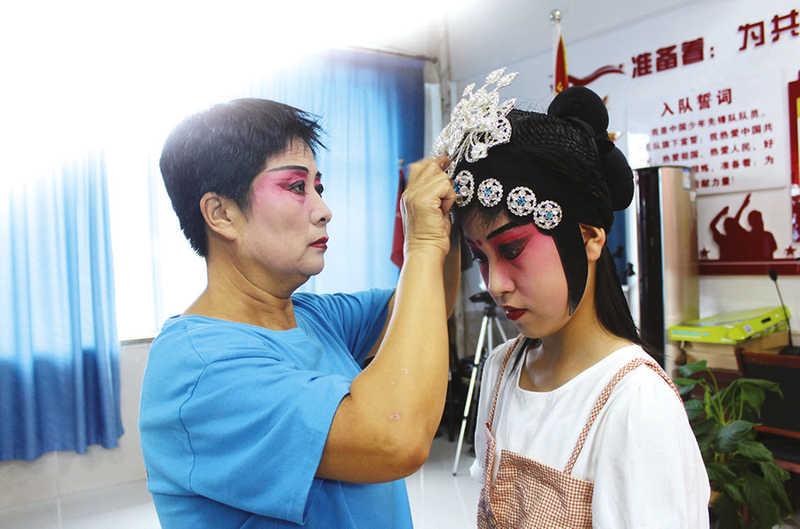 “今天我们来了十六位老艺人,主要开展传统戏曲基础知识、乐器知识、服装知识、身段表演技法等方面的传授或指导,让孩子们了解传统戏曲的同时,助力传统文化传承和创建全国文明城市。同时,也希望通过这样的活动扩大地方剧种在年轻群体中的影响,培养起一批了解、热爱戏曲的年轻观众。”该市文联的相关负责人说。