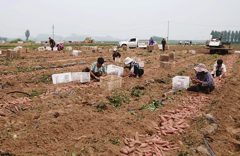 近日,河北省卢龙县的鲜食红薯陆续进入收获期,农民开始适时收获,供应市场。近年来,卢龙县积极引导群众根据当地土质特点,采用“滴灌+覆膜”等技术种植鲜食红薯,促进农业增产农民增收。