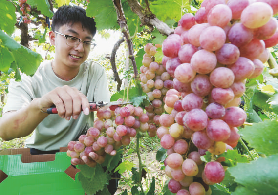 9月12日,河北省晋州市周家庄乡果农在果园采摘葡萄。金秋时节,河北省各地的梨、苹果、葡萄等水果和花生、玉米等农作物陆续成熟,农民开始适时收获,不少游客前来采摘,田间地头呈现出一派丰收的景象。
