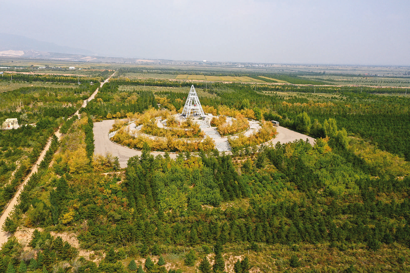 昔日西山四起尘,而今百木已成林。青青芳草连天碧,郁郁苍松遍地馨。日丽风和鸟鸣唱,山清水秀马长吟。朔城儿女凌云志,力挡风沙日月新。