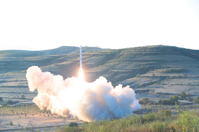 9月25日6时55分,我国在太原卫星发射中心使用快舟一号甲运载火箭,以“一箭双星”方式,成功将试验十四号和试验十五号卫星发射升空,卫星顺利进入预定轨道,发射任务获得圆满成功。 新华社发 郑斌摄