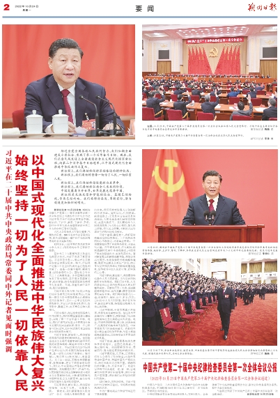 党的二十届一中全会产生中央领导机构 习近平任中共中央总书记中央军委主席