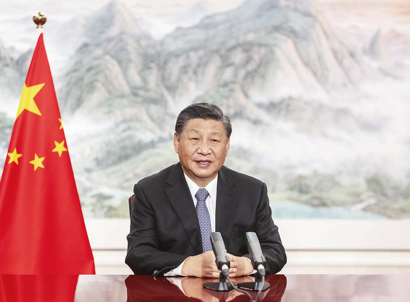 11月5日下午,国家主席习近平以视频方式出席在武汉举行的《湿地公约》第十四届缔约方大会开幕式并发表题为《珍爱湿地守护未来推进湿地保护全球行动》的致辞。 新华社记者 李学仁 摄