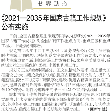 《2021—2035年国家古籍工作规划》 公布实施