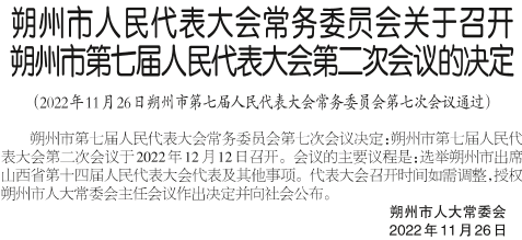 朔州市人民代表大会常务委员会关于召开朔州市第七届人民代表大会第二次会议的决定