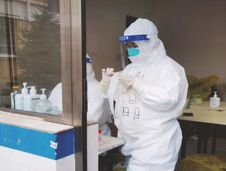 疫情就是命令,防控就是责任。张晶毫不犹豫向所在的天河美域中心社区报到。穿上防护服、戴上隔离面屏,随即拿出手机,向工作人员学习核酸采样流程,熟练后立即投入工作。一边问询,一边扫码,一边登记,碰到操作手机不熟练的老人,她主动耐心帮助解决问题,三个小时竟完成了900余人核检。在做完低风险人员核酸后,她又冒着被感染的风险,把医用废物回收袋用胶带缠在身上,立即前往高风险区上楼逐户核检。