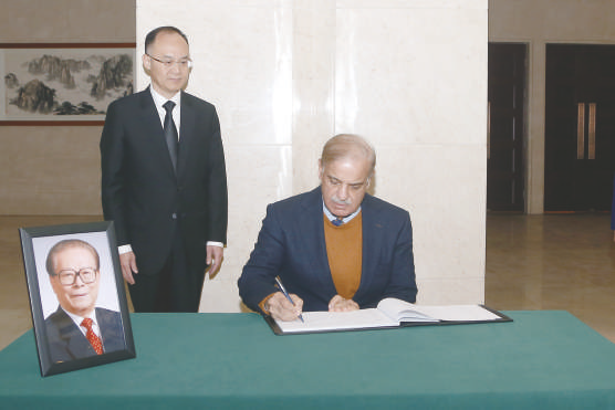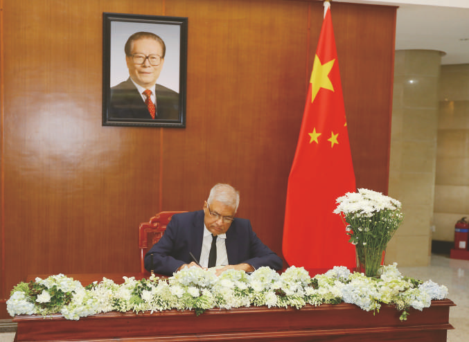 12月1日,巴基斯坦总理夏巴兹在中国驻巴基斯坦大使馆吊唁江泽民同志。