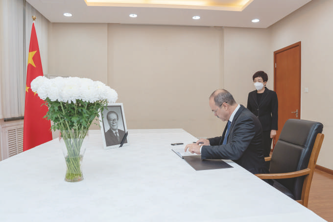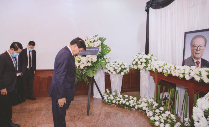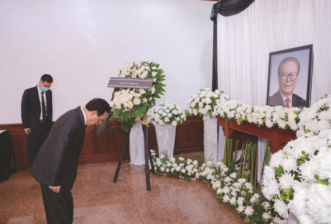 12月5日,柬埔寨首相洪森在中国驻柬埔寨大使馆吊唁江泽民同志。