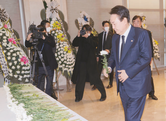 12月2日,韩国总统尹锡悦在中国驻韩国大使馆吊唁江泽民同志。