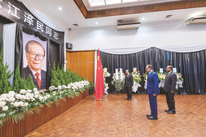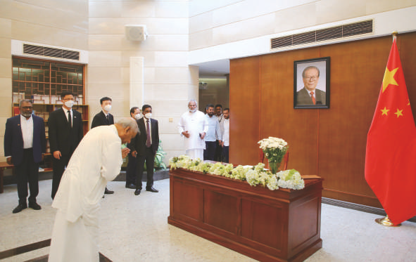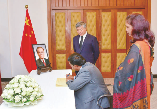 十二月二日,斯里兰卡总统维克拉马辛哈在中国驻斯里兰卡大使馆吊唁江泽民同志。
