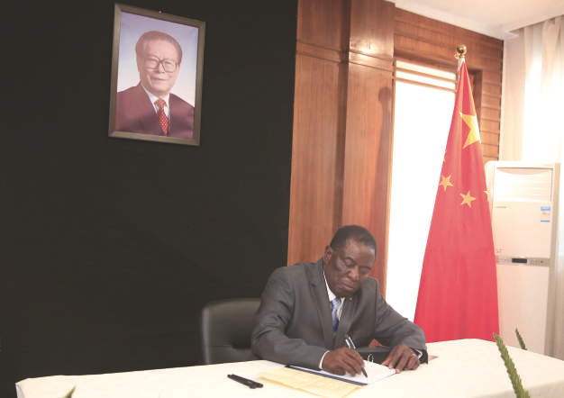 十二月五日,津巴布韦总统姆南加古瓦在中国驻津巴布韦大使馆吊唁江泽民同志。