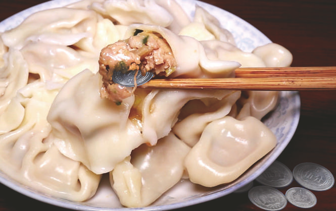 儿子说完后就着急地吃了起来,不一会儿,就吃下六七个。父亲一看有些着慌,就说:“卬娃把碗给爷爷拿来看看,好像这个饺子里就有镚镚。”父亲变戏法似的把一个五角的红铜镚镚塞到了一个饺子里。