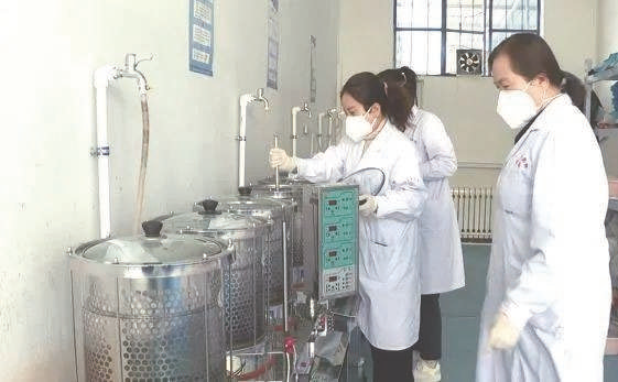 应县中医院充分发挥中医药的特色和优势,组织医务人员加班加点配制中药预防汤剂,严控加工制作流程,从处方调配、清洗、浸泡到汤剂煎煮、包装,所有步骤规范执行;药剂人员分工协作,严把汤剂质量关,全力以赴筑牢疫情防控防线,为群众健康保驾护航。