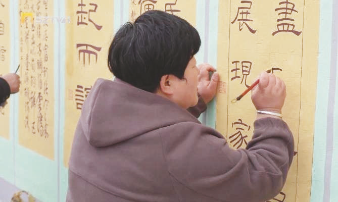 山阴县岱岳镇甘庄村不断探索村民农闲时的新型生活方式,凝心聚力发展乡村书法园地,通过举办墙体书法展等系列活动,一起打造美丽乡村,提振乡村“精气神”。 本通 摄