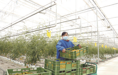 12月27日,在邢台市南和区贾宋镇一家现代农业园区,工人在搬运西红柿。近年来,河北省邢台市南和区加快科技成果转化,采用智慧化、数字化管理体系,对农作物生长实现智能化管理,提升农产品附加值,助力乡村振兴。
