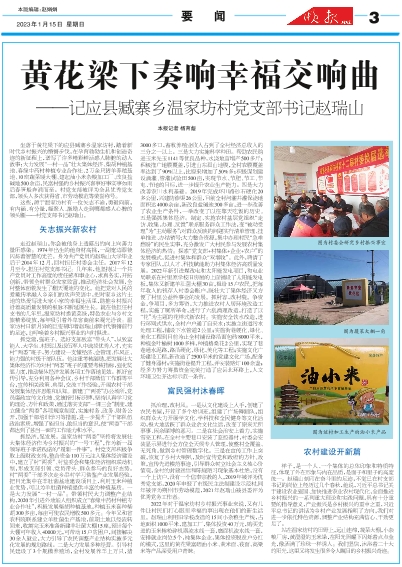 样子,是一个人、一个集体的总体印象和特质特征,体现了外在形象与内在品质,是面子和里子的高度统一。赵瑞山刻印在奋斗里的足迹,不觉已在村支部书记的岗位上经历过几个春秋,他说,习近平总书记关于建设农业强国、加快推进农业农村现代化、全面推进乡村振兴的一系列重大理论和实践问题,具有十分重要的指导意义,产业振兴是乡村振兴的重中之重,习近平总书记的讲话为乡村产业发展指明了方向,我们对进一步依托特色资源、调整产业结构充满信心、干劲更足了。