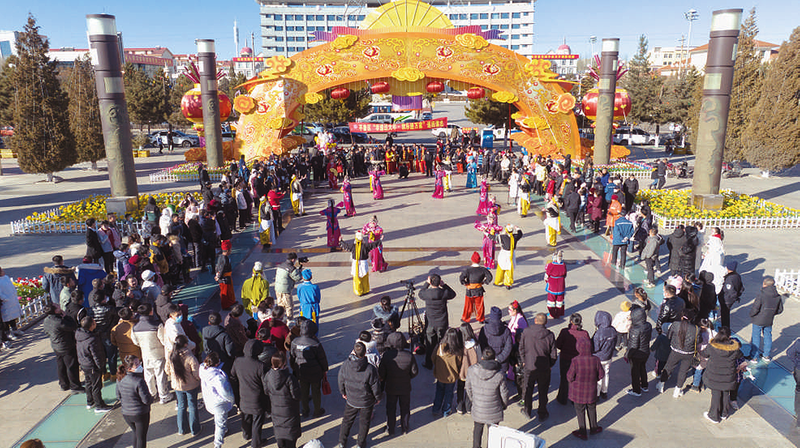 元宵佳节期间,门神故里朔州市平鲁区举办骡驮轿、踢鼓秧歌等多种民俗话动。 池茂花 刘强 摄