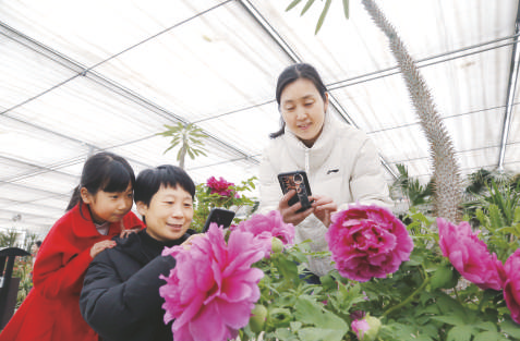 2月12日,游客在南和区贾宋镇一家农业综合体赏花。近年来,河北省邢台市南和区依托农业资源优势,打造集观光旅游、科普教育、农事体验于一体的“农旅融合”生态观光综合体,促进农民增收,助力乡村振兴。
