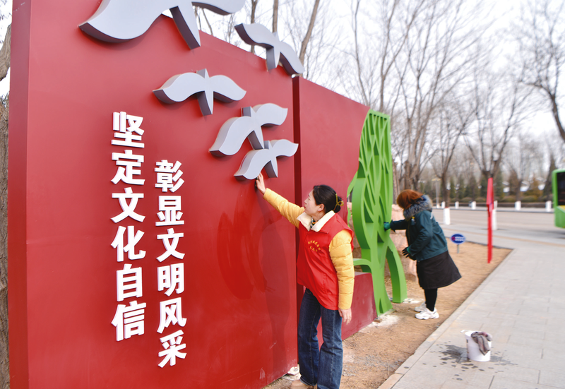 近年来,我市不断推动文明城市创建常态化长效化,打造整洁文明的城市环境和生活空间,确保城市“高颜值”,提升城市文明内涵,让城市越来越美好。图为市城发集团志愿者在市人民公园清洗文化宣传栏。 记者 薛礼伟 摄