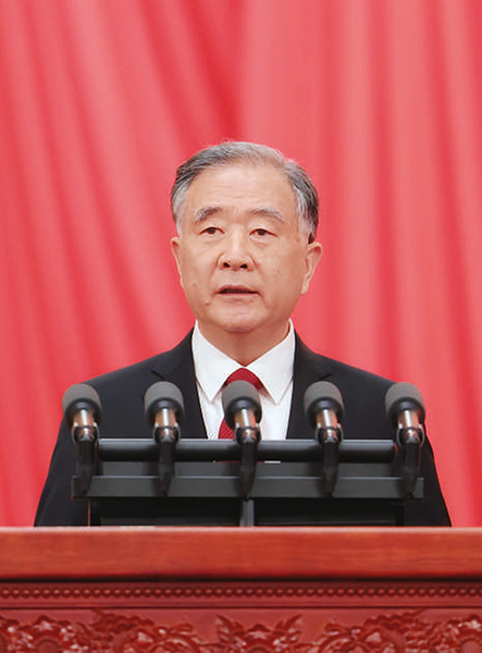 下午3时,王沪宁宣布大会开幕,全体起立,高唱中华人民共和国国歌。