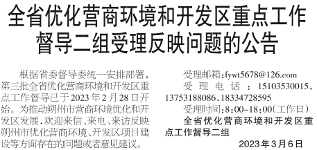 全省优化营商环境和开发区重点工作督导二组受理反映问题的公告
