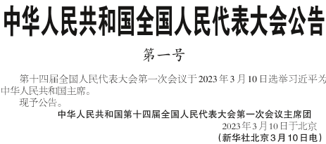 中华人民共和国全国人民代表大会公告