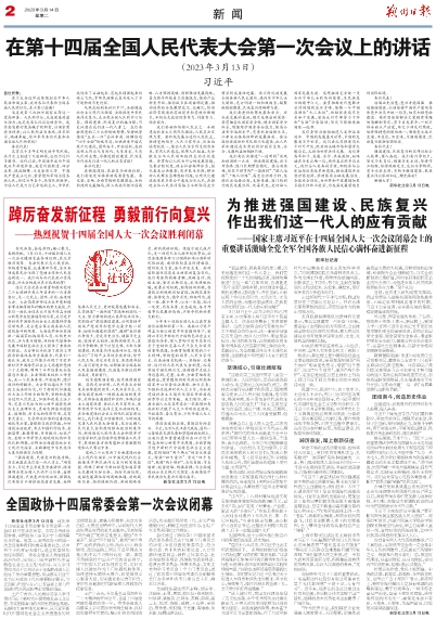 “强国建设、民族复兴的接力棒,历史地落在我们这一代人身上。”闭幕会上,习近平主席发表重要讲话,深刻阐明全党全国人民的中心任务,着眼强国建设、民族复兴的新征程,强调我们要坚定不移推动高质量发展、始终坚持人民至上、更好统筹发展和安全、扎实推进“一国两制”实践和祖国统一大业、努力推动构建人类命运共同体,深刻指出“推进强国建设,必须坚持中国共产党领导和党中央集中统一领导,切实加强党的建设”,强调“我们要只争朝夕,坚定历史自信,增强历史主动,坚持守正创新,保持战略定力,发扬斗争精神,勇于攻坚克难,不断为强国建设、民族复兴伟业添砖加瓦、增光添彩!”习近平主席的重要讲话,坚守人民立场、坚定历史自信、彰显使命担当、指引前进方向,必将激励全国各族人民在强国建设、民族复兴新征程踔厉奋发、勇毅前行。