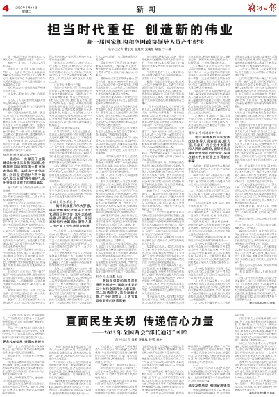至此,今年共有9位部门负责人在全国两会“部长通道”回答记者提问。密集的“部长声音”直面民生关切,触摸时代脉搏,传递出阔步新征程的信心和力量。