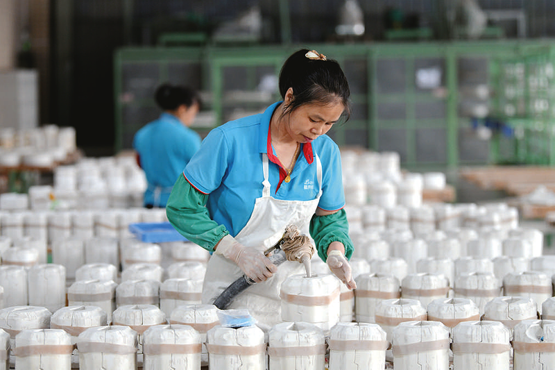 3月21日,在德化一家陶瓷企业生产车间,工人给陶瓷空心注浆。福建德化是中国三大古瓷都之一,德化白瓷是其标志性产品。连日来,当地陶瓷企业加紧生产,赶制订单,全力冲刺首季“开门红”。 新华社发 王旺旺 摄