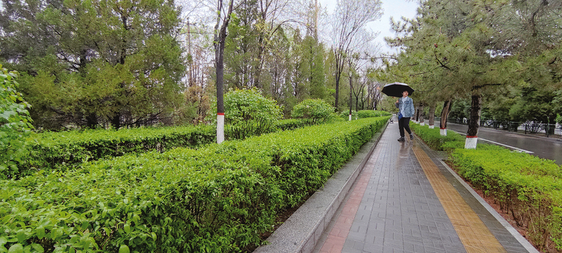 受冷气流影响,5月5日,我市再次迎来降温降水天气,连绵细雨对于降尘保墒具有重要作用。图为市民在细雨中漫步。