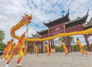 5月7日,江苏省级非遗项目丁伙龙舞表演队在江苏省扬州市江都区丁伙镇朴园表演。近年来,江苏省扬州市江都区挖掘非物质文化遗产的社会、文化价值,推动“非遗+旅游”深度融合发展,给游客带来多元文旅体验。