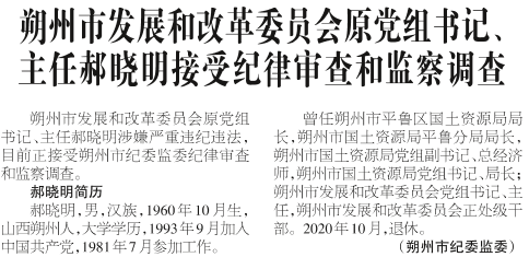 朔州市发展和改革委员会原党组书记、主任郝晓明接受纪律审查和监察调查