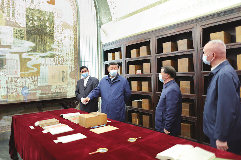 1日下午,习近平乘车来到位于北京市昌平区燕山脚下的中国国家版本馆中央总馆。中国国家版本馆主要承担国家版本资源规划协调、普查征集、典藏展示、研究交流和宣传使用职责,建有中央总馆和西安、杭州、广州分馆。习近平首先走进文华堂,听取版本馆规划建设有关情况介绍,参观国家书房、中华古代文明版本展、中国当代出版精品与特色版本展。在文瀚阁,习近平仔细察看马克思主义中国化时代化经典版本展,不时询问版本搜集整理有关情况,并登上五层露台俯瞰版本馆全貌。随后,习近平来到兰台洞库,参观“汉藏蒙满文大藏经雕版合璧”和“《四库全书》合璧”库展,详细了解馆藏精品版本保存情况。习近平强调,我十分关心中华文明历经沧桑流传下来的这些宝贵的典籍版本。建设中国国家版本馆是我非常关注、亲自批准的项目,初心宗旨是在我们这个历史阶段,把自古以来能收集到的典籍资料收集全、保护好,把世界上唯一没有中断的文明继续传承下去。盛世修文,我们这个时代,国家繁荣、社会平安稳定,有传承民族文化的意愿和能力,要把这件大事办好。我对中国国家版本馆的建成和管理是肯定的、满意的。国家版本馆的主要任务就是收藏,要以收藏为主业,加强历史典籍版本的收集,分级分类保护好。同时,要加强对收藏的研究,以便更好地做好典籍版本收藏工作。在做好主业的前提下,协助各方面做好历史典籍版本的研究和挖掘。总之,建设中国国家版本馆,是文明大国建设的基础工程,是功在当代、利在千秋的标志性文化工程。