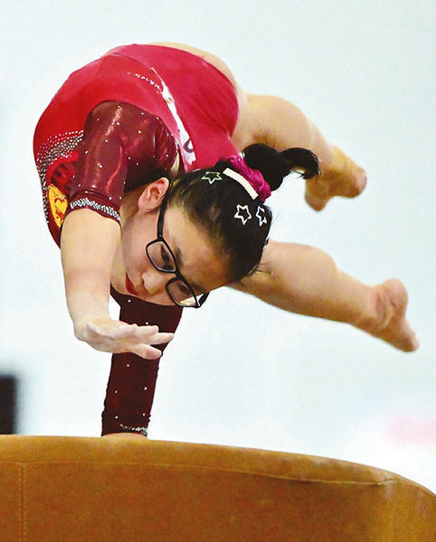 8月15日,体操运动员在比赛中展示着力与美。 山西日报记者 刘通