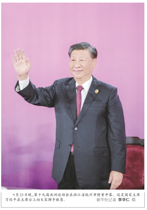 新华社杭州9月23日电 潮涌钱江喜迎盛会,携手同行共创未来。第十九届亚洲运动会23日晚在浙江省杭州市隆重开幕。国家主席习近平出席开幕式并宣布本届亚运会开幕。