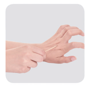 用牙签钝头或圆珠笔头(不是笔尖)点按落枕穴,穴位局部可出现酸麻胀感,每次点按1分钟,抬起牙签(笔头),休息片刻,可以重复操作,点按5分钟左右。