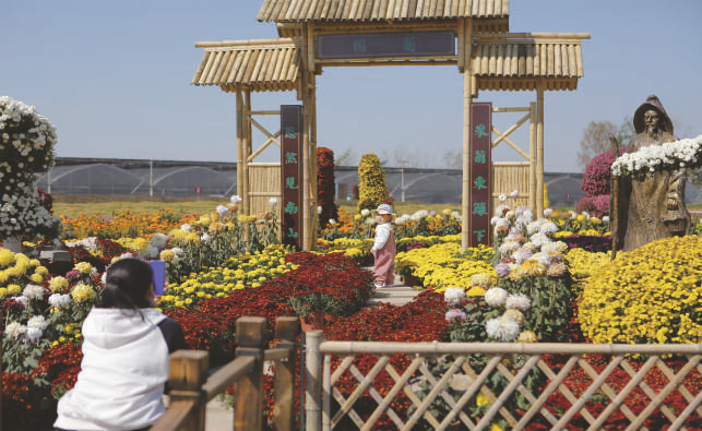 10月21日,在江苏射阳县洋马菊花节,市民在游玩拍照。近日,2023中国·射阳第七届江苏菊花文化艺术节暨第二十八届洋马菊花节在江苏射阳县洋马镇举办,吸引游客前来赏花游玩。 新华社记者 柳文惠摄