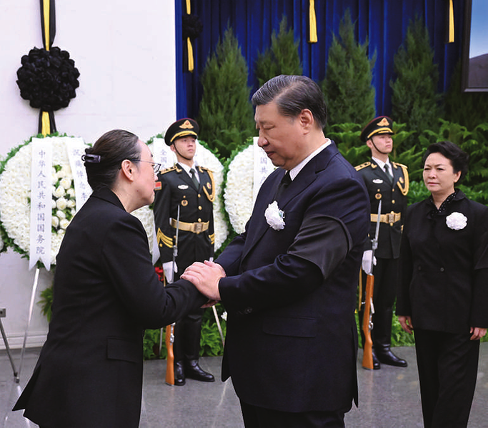 11月2日,李克强同志遗体在北京八宝山革命公墓火化。习近平、李强、赵乐际、王沪宁、蔡奇、丁薛祥、李希、韩正等前往八宝山送别,胡锦涛送花圈表示哀悼。这是习近平与李克强亲属握手,表示深切慰问。 新华社记者谢环驰 摄