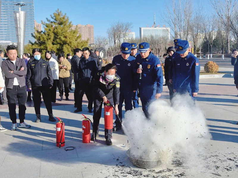 近日,市文旅局邀请市消防救援队人员对相关人员开展了消防培训演练活动,消防员通过边讲解边操作的方式,对灭火器的灭火原理、正确使用步骤、操作细节和灭火技巧进行详细讲解,参训人员亲身体验了如何快速扑灭初期火灾的重要性,进一步增强其消防安全意识和应对、处置突发事件的能力。图为消防员在作示范演练。 薛礼伟 摄