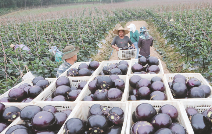 12月17日,工人在云南省景洪市勐罕镇的一家种植基地采摘圆茄。近日,多地迎来低温寒潮天气,云南省各县农户和种植企业忙着采收蔬菜供应市场。云南省具有良好的热区资源,冬早蔬菜种植产业成熟,是全国重要的冬早蔬菜基地、南菜北运和西菜东送基地。 新华社发 李云生摄