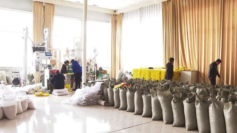 山阴县薛圐圙乡深入挖掘“一村一品”优势,在乡村振兴政策扶持下,积极调整种植结构,因地制宜改造弃耕盐碱地,实施特色海水稻种植,提高了土地利用率,促进了农民增收致富。图为工人师傅们正在进行稻米加工。 张智宙 马富瑞摄