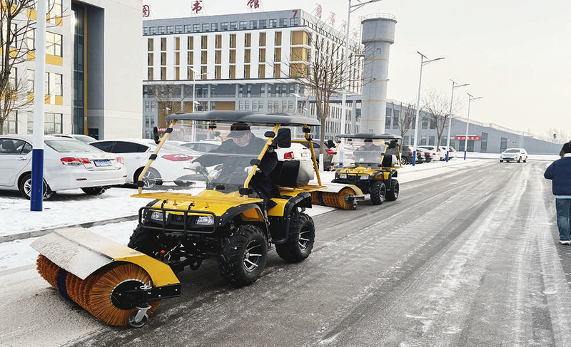 1月8日晚间到9日凌晨,怀仁市迎来2024年第一场降雪,这场降雪对净化空气质量和增加土壤墒情都很有利,同时也对民众的出行造成一定的影响。图为朔州陶瓷职业技术学院为确保师生出行安全,组织人力、机械清除道路积雪。 马占俊 孟树斌 摄
