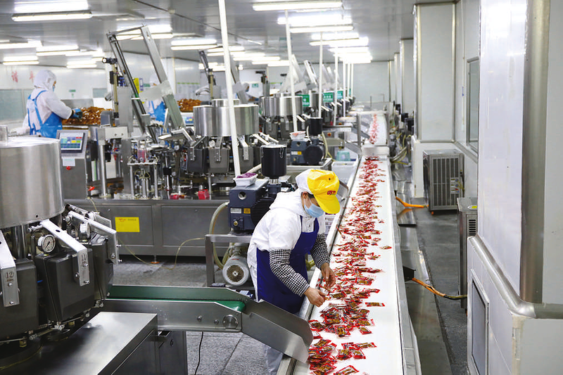 新春佳节临近,各地企业紧抓新年订单,鼓足干劲忙生产。图为1月24日,在重庆市梁平区一家豆制品企业,工人在豆干生产线上忙碌。 新华社发 刘辉 摄