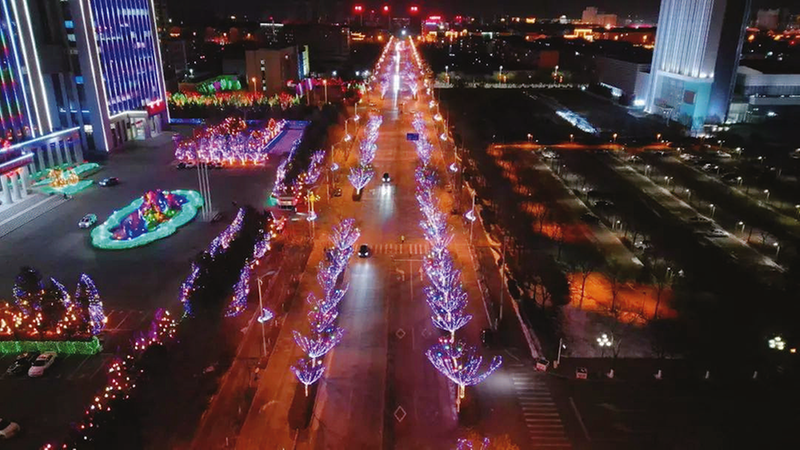 在传统佳节春节即将来临之际,我市在市区主要道路、广场、公园等地悬挂了大小不一、形式各样的彩灯,全方位妆点城市夜景,为市民营造喜庆、祥和的节日氛围。 刘希军 杨澜 摄