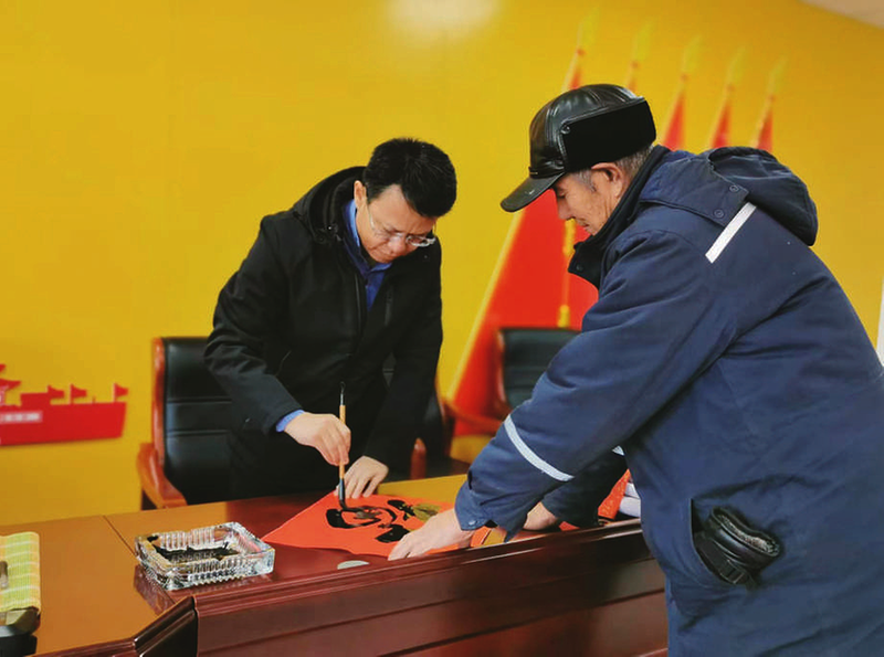 1月25日,山阴县北周庄村喜气洋洋,一股节日的气氛,甲辰(2024)民进全国“春联万家·向‘新’而行”活动在北周庄村委会举行。这次活动共书写春联500多幅,斗方200多个,福字200多个。图为民进朔州市市直综合二支部组织我市部分书法家现场书 写 春 联 。