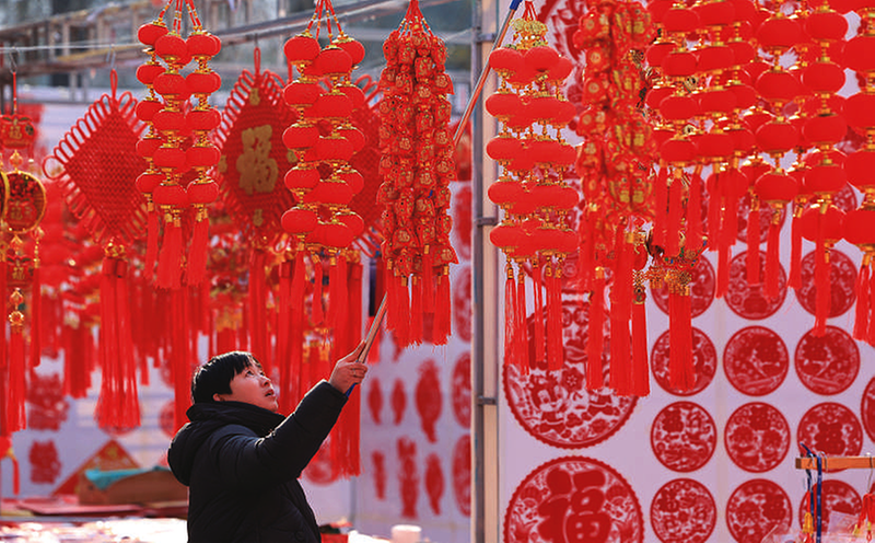 春节临近,人们忙着采购新春饰品,喜迎佳节。
